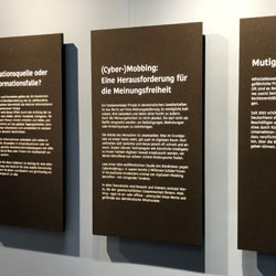 Leistungen: Herstellung druckfähiger Dateien für Texttafeln, Typografie im Raum, Illustrationen, Zeichnungen, Beschriftungen, Orientierungspläne;